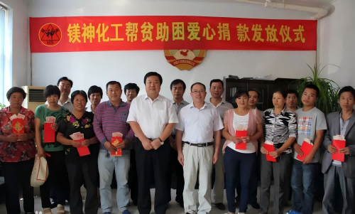2.同獻愛心共鑄希望背景:2019年9月2日,董事長孫文先生獻愛心資助貧困大學。本次救助的是北塘疃鎮(zhèn)公村一名即將入學的貧困大學生呂某某,他當年參加高考考上了河北東方學院,面對上萬元的學費,這個貧困農家一籌莫展。呂延達這個孩子非常孝順,不愿意父母為自己背上沉重的債務,決定放棄讀大學的機會,外出打工。董事長獲悉后,決心幫他渡過難關,迅速聯(lián)系他來鎂神公司,慷慨解囊資助1.5萬,一直幫他完成大學學業(yè)。董事長和受到資助的貧困大學生及家長熱情握手并鼓勵說:“小伙子,我就出身廣宗農村,深知上大學的機會來之不易和父母的艱辛,我供你念大學,你好好念書,要奮發(fā)努力,將來成為一個對國家、對社會有用的人才,再去回饋社會。”