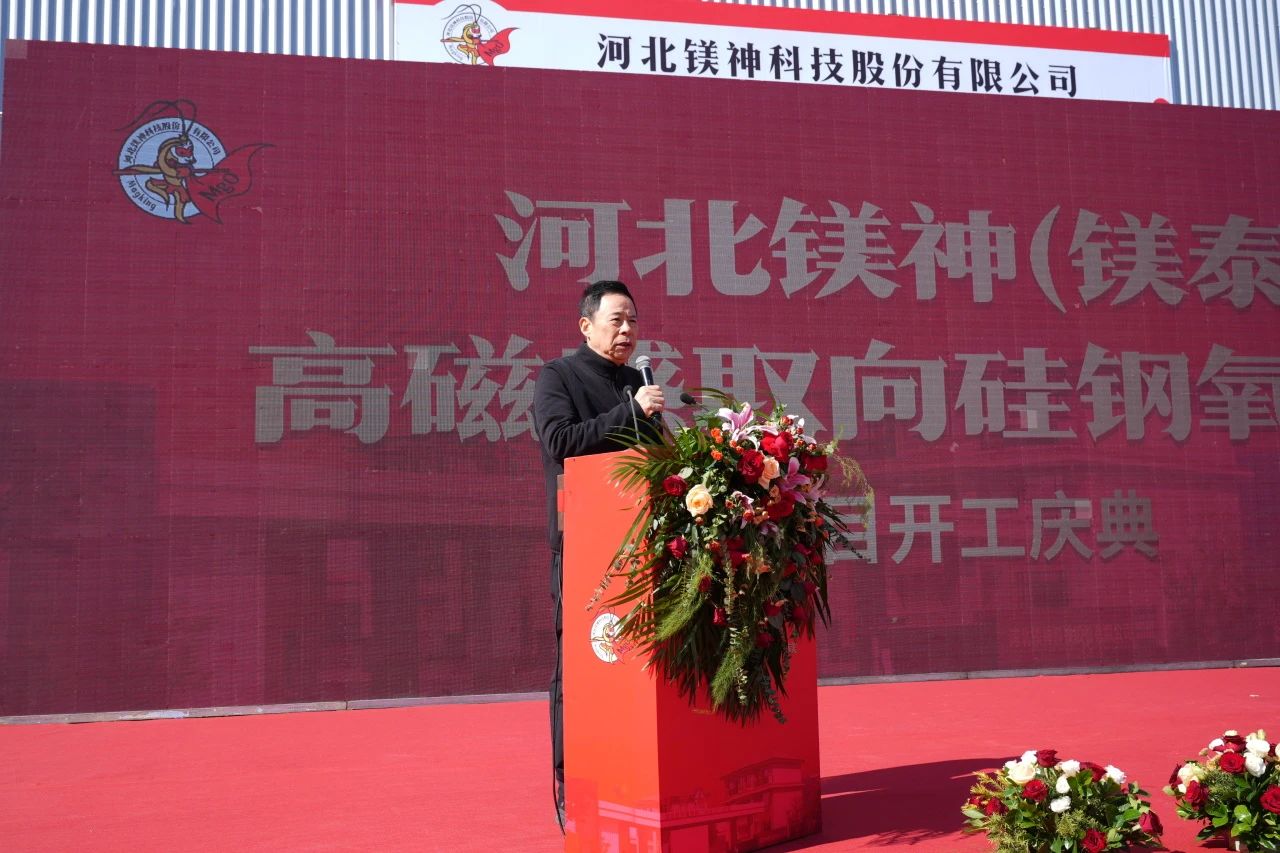 孫文董事長首先對遠道而來的各位領導、專家、合作伙伴和朋友們表示由衷的感謝。他提到,這一項目的順利啟動,離不開社會各界長期以來對鎂神科技的支持與厚愛。在致辭中,他回顧了公司21年來通過專注于氧化鎂行業的深耕與應用研發,從傳統氧化鎂產品逐步向高端化、精細化轉型升級的發展歷程。并分享了自己站在中國鎂鹽行業的前沿對硅鋼氧化鎂的見解。最后,孫文董事長再次對與會嘉賓的支持表示感謝!并堅信在鎂神的戰友們共同努力下,未來10年一定能實現世界級鎂質新材料定制專家,世界級應用研發領跑者,全球鎂資源整合者,世界級隱形冠軍締造者的戰略目標。為中國一帶一路添彩,為中國制造爭光,為民族復興增磚添瓦,為中國鎂行業發展貢獻我們的一份力量。